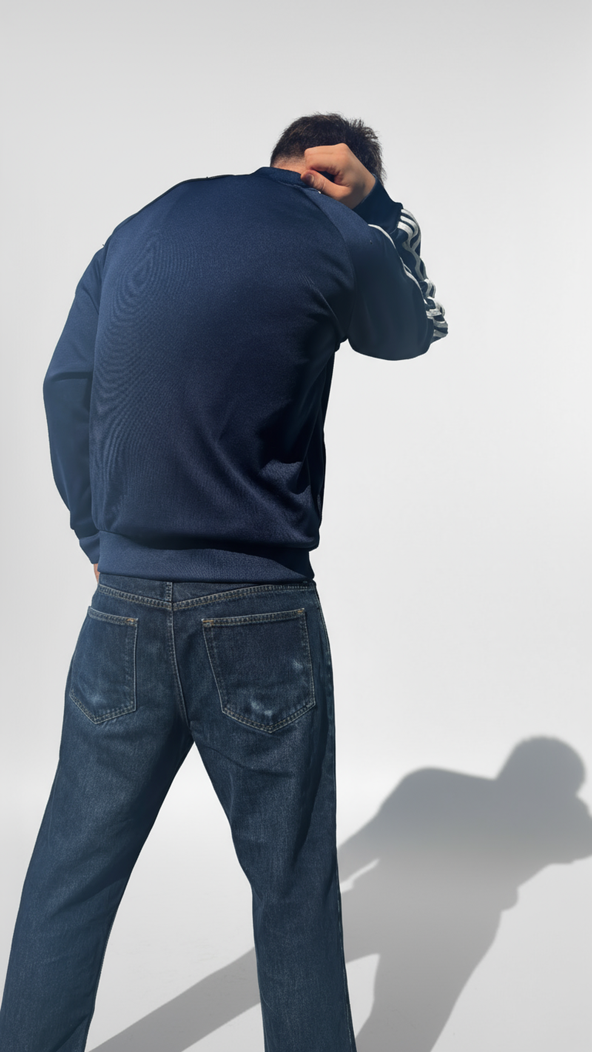 Felpa Adidas Blu con righe bianche sui lati - Un classico dello stile sportivo. Questa felpa Adidas blu è valorizzata dalle iconiche righe bianche lungo i lati, per un look dinamico e senza tempo. Comoda, versatile e perfetta per ogni occasione casual.